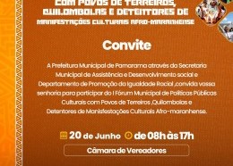 Será realizado na próxima terça-feira (20 de junho), das 8h às 17h, na sede da Câmara de Vereadores de Parnarama, o 1º Fórum Municipal de Políticas Públicas Culturais com Povos de Terreiros, Quilombolas e Detentores de Manifestações Culturais Afro-maranhenses. A…
