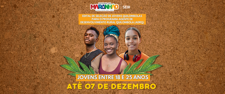 O Governo do Maranhão, por meio da Secretaria de Estado da Igualdade Racial (SEIR) e da Secretaria de Estado dos Direitos Humanos e Participação Popular (SEDIHPOP), torna público o Edital nº 019/2025, que abre seleção para o ingresso de 465 jovens quilombolas no Programa Agente de Desenvolvimento Rural Quilombola (ADRQ).